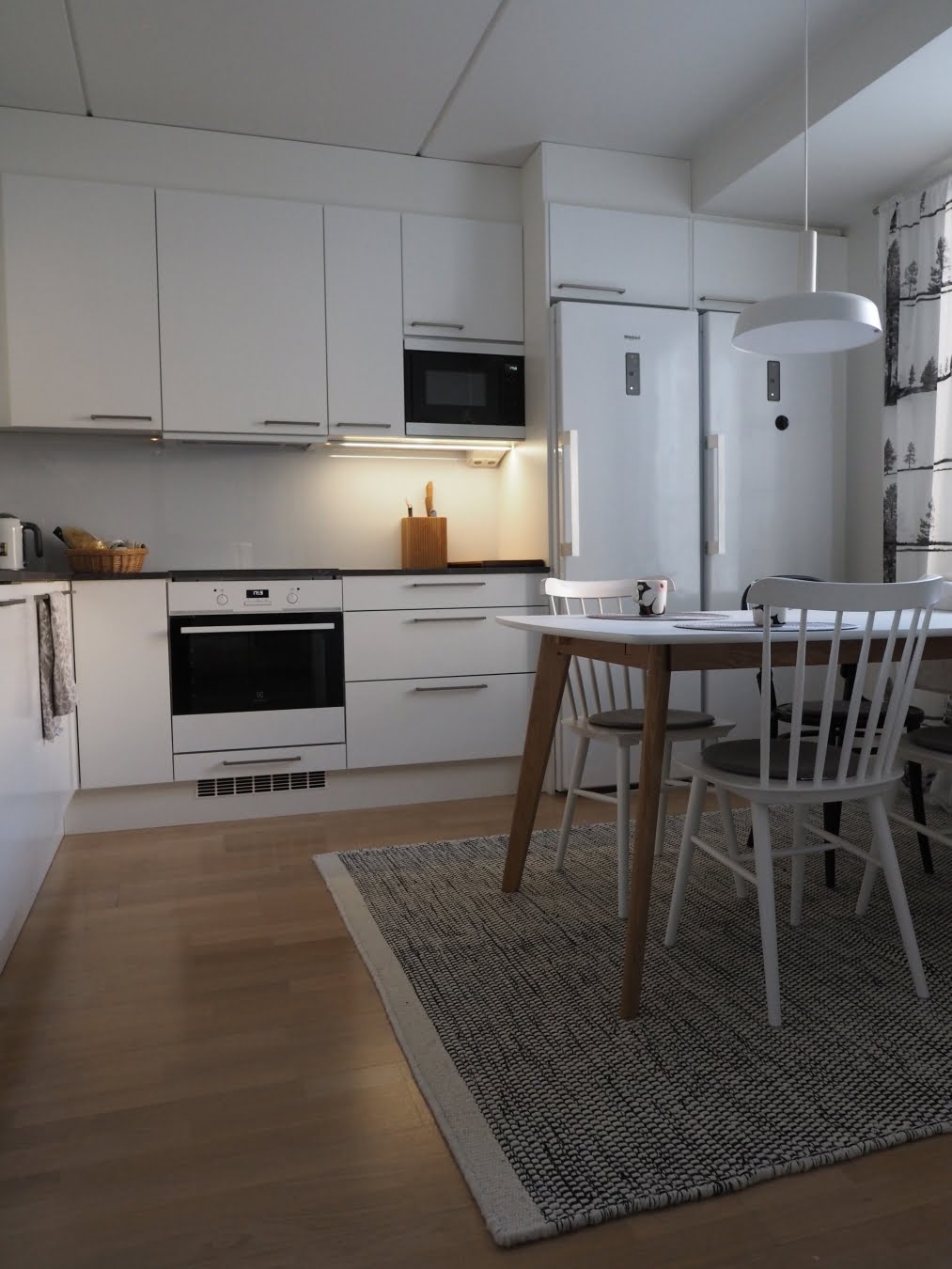 Keittiö näyttää siistimmältä ja siellä on kivempi tallustella, kun lattia ei ole täynnä muruja ja muuta pientä roskaa. Imuriin tulee tartuttua usemmin, kun sitä ei tarvitse kaivella kovin hankalasta paikasta. Itse imuroin keittiön kerran tai pari viikossa myös siksi, että ruokapöytämme alla on villamatto – ihanaan uuteen mattoon voit tutusta täällä. Imurointi on tunnetusti villamaton parasta hoitoa.