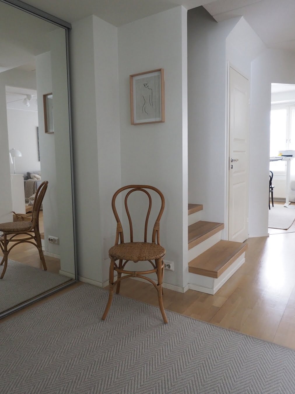 Iloitsen portaista myös siivotessani, sillä puupinta on huomattavasti helpompaa imuroida ja pitää puhtaana ja siistinä kuin matto. Porrasmattoa en halua enää ikinä.