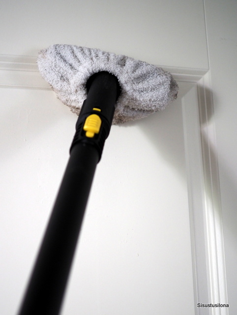 Seuraavaksi puhdistin kaikkien huoneiden ovet. Koskahan olen viimeksi puhdistanut ne ylhäältä asti? Ovet alkoivat suorastaan hohtaa.