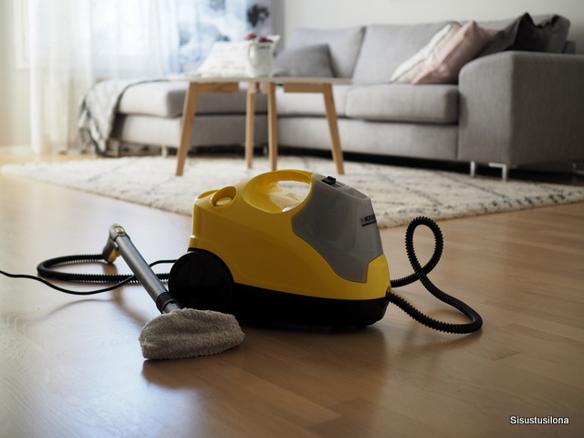 Minulla on ollut höyrypesuri jo muutaman vuoden ja kerran kuussa pesen sillä kaiken. Lattiat on vinyyliä ja kiveä, joten lattiatkin menee. Höyryllä olen kerran saanut palohälyttimenkin huutamaan…ei muuten haittais, mutta hälytys menee suoraan vartiointiliikkeeseen ja siitä tieto miehelle maailmalle…no onnkesi hän oli kehoittanut soittamaan minulle ennekuin laittoivat palomiehet kylään 😉
