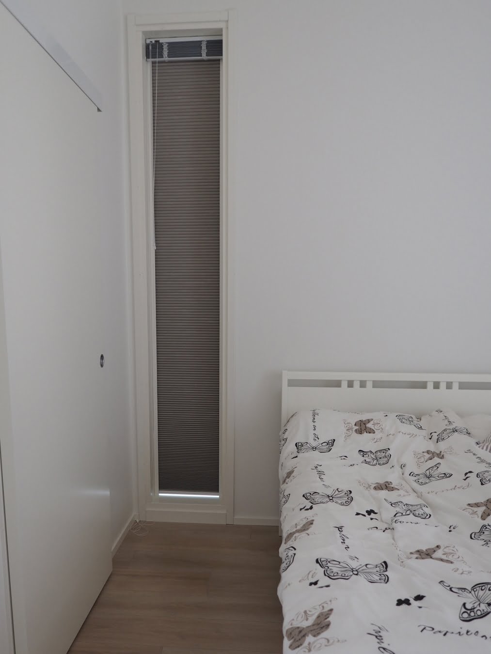 Uudessa kodissamme on korkeat ikkunat, joita en halunnut peittää verhoilla. Niinpä tilasin kahteen makuuhuoneeseen pimentävät vekkikaihtimet heti kesän alkuun. Toisessa makuuhuoneessa kaihtimet toimivat alusta lähtien täydellisesti.