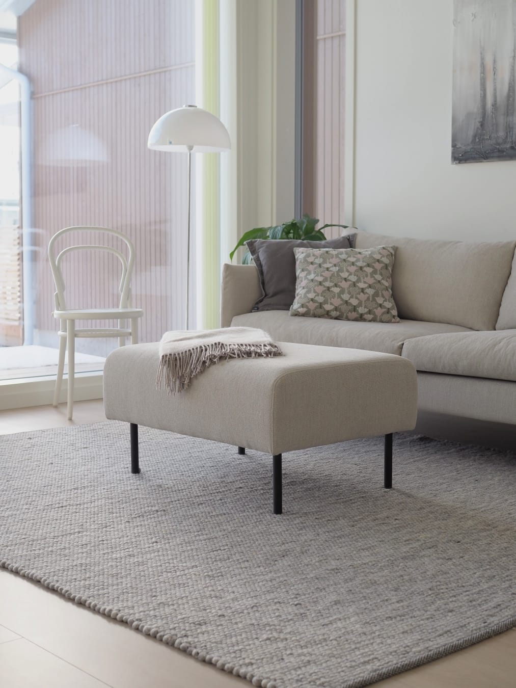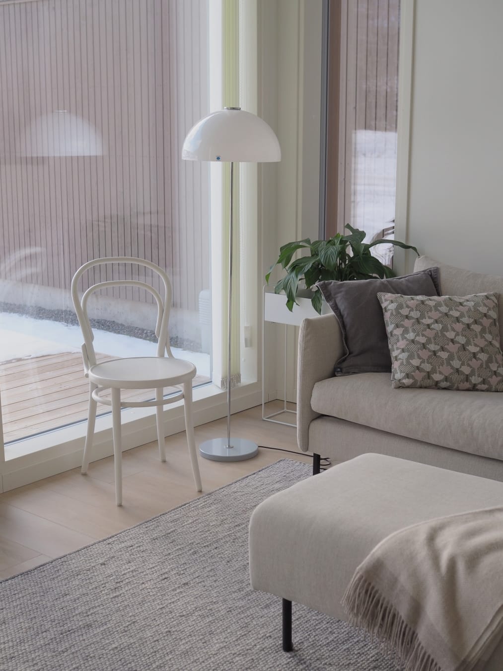 Voit vaikuttaa kodin valoisuuteen myös matoilla ja verhoilla. Vaaleasävyiset matot ja verhot tuovat lisää ilmavuutta eivätkä ime valoa itseensä.