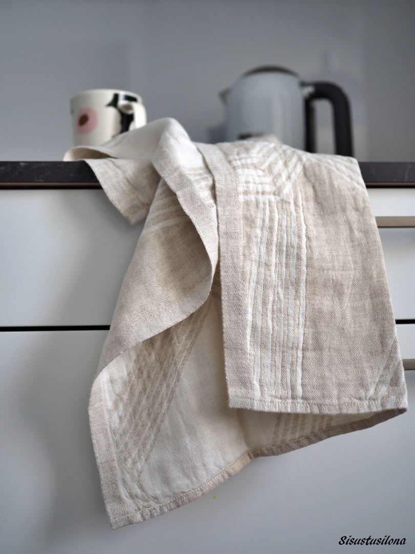Olen rakastunut pellavapyyhkeisiin. En oikeastaan haluaisi muita enää käyttääkään, varsinkaan keittiössä. Keveät, pestyt pellavapyyhkeet peittelevät pullat ja sämpylät kauniisti ja kuivaavat kädet lempeästi ja tehokkaasti. Pellava myös kuivuu käytön jälkeen nopeasti, ja joudun harvoin pyyhkimään käsiäni märkään keittiöpyyhkeeseen.