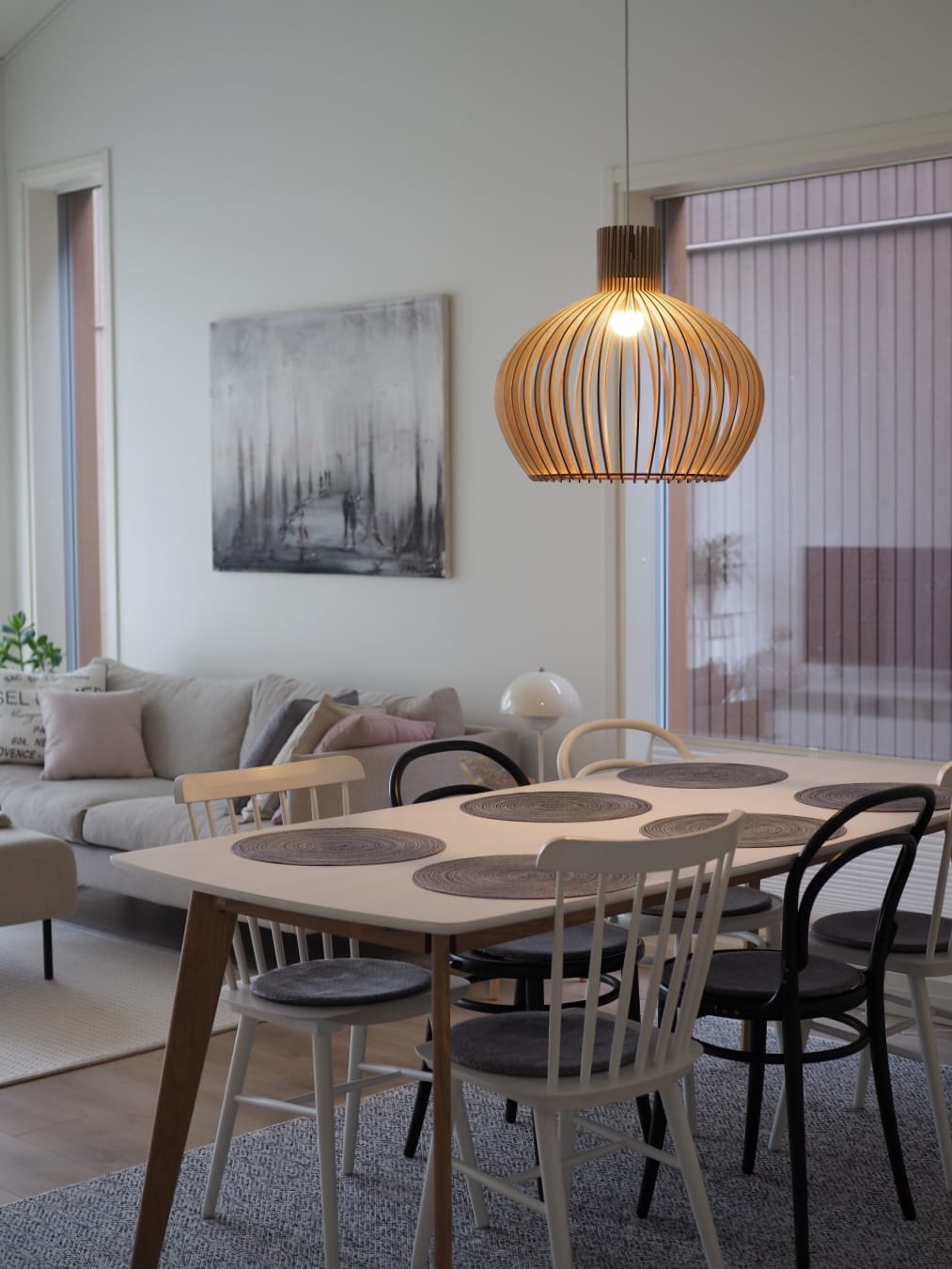 Ruokapöydän valaisin näyttää hassulta, jos se on liian korkealla. Toisaalta se ei voi olla liian matalallakaan. Mikä olisi oikea korkeus? Näitä mietin, kun löysin vihdoin sopivan valaisimen ruokapöydän yläpuolelle. Ehkä sinäkin olet miettinyt samaa. Lue tästä, miten voit kätevästi testata oikean asennuskorkeuden.