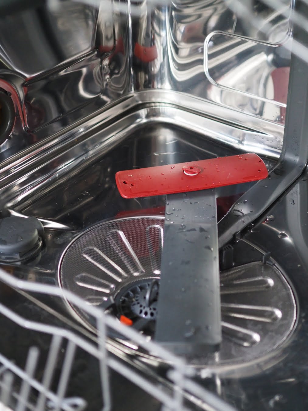 Nyt astianpesukoneessamme on hieno punainen pesulapa ja kone pesee taas tiskit puhtaiksi ja kirkkaiksi.