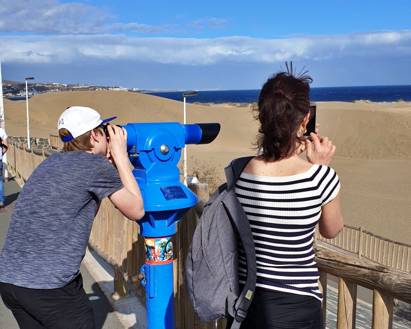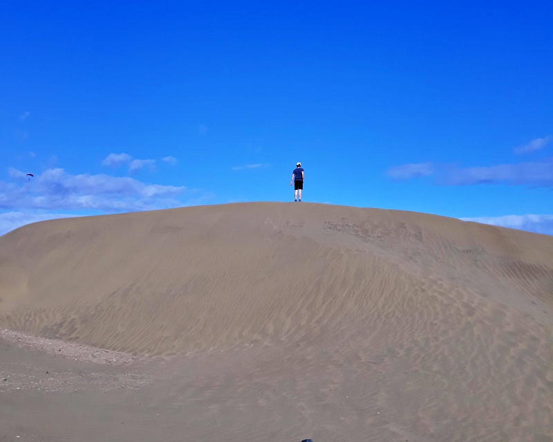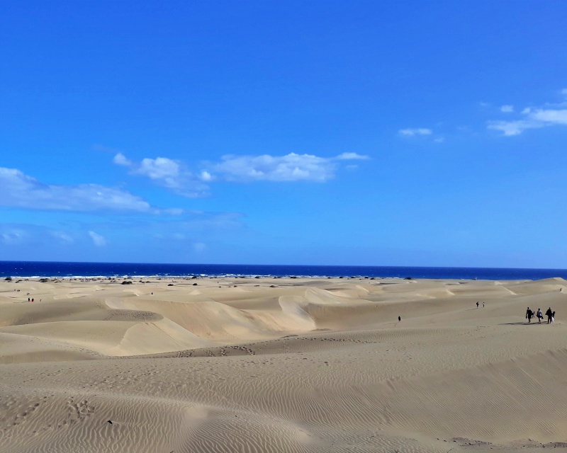 Kun laskeuduimme taas alas vuoristosta ja ajelimme etelään, tutustuimme ehkä koko matkan vaikuttavimpaan nähtävyyteen, Maspalomasin dyyneihin. Ne levittäytyvät neljän neliökilometrin kokoiselle alueelle ja takana kimalsi Atlantin valtameri.