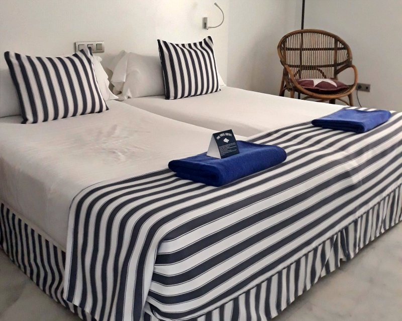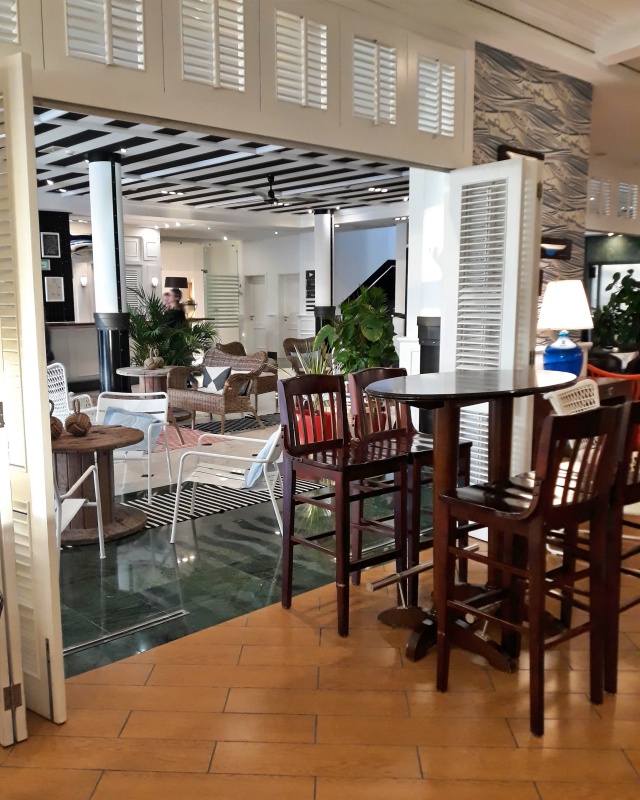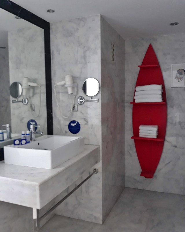 Merihenkinen raikas sisustus ulottui läpi koko hotellin ja siellä täällä oli hauskoja teemaan sopivia yksityiskohtia, esimerkiksi veneiden pienoismalleja porraskäytävän seinällä.