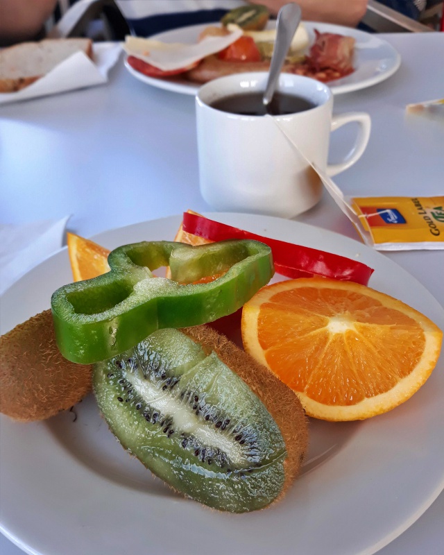 Aamiaisen söimme meripaviljongissa rannalla ja illallisen hotellin viihtyisässä ravintolassa. Tarjonta oli monipuolista ja värikästä ja ruoka maistui meille mainiosti. Olen itse kasvisten ja kalan ystävä ja laskeskelin, että söin joka päivä vähintään neljää eri kalalaatua, lukemattomista eri kasviksista ja hedelmistä puhumattakaan.