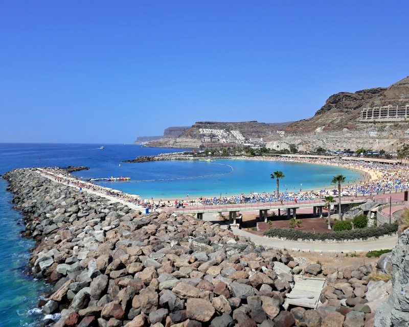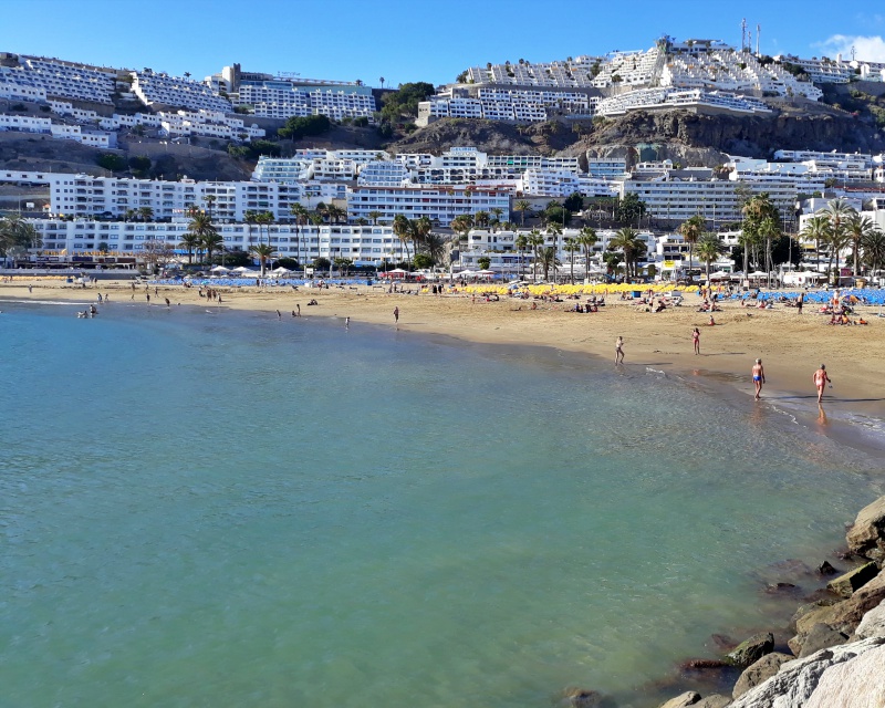 Kävelymatkan päässä sijaitsee myös Playa de Amadores, yksi Gran Canarian hienoimmista rannoista. Sitä kävimme vain katsomassa, sillä totesimme, ettei kannata lähteä merta edemmäs kalaan (uimaan).