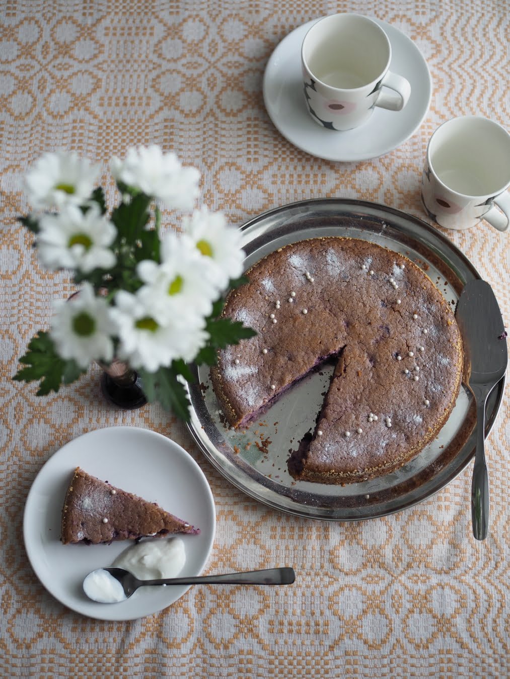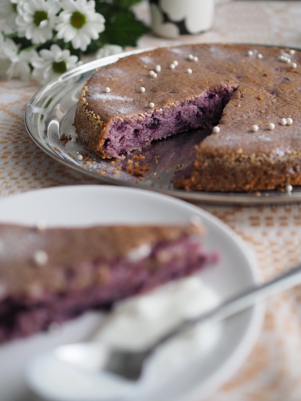Mustikkakakku on löytö, jonka tein netin uumenista leivontaohjeita selaillessani. Ihastuin ideaan heti, kun näin ohjeen Liemessä-blogissa.