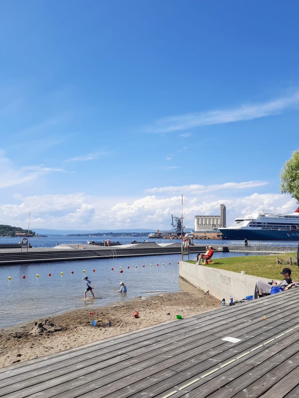 Kävimme uimassa kolmena päivänä, ja jokainen kokemus oli ainutlaatuinen. Sørenga-merihiekkaranta keskustan kupeessa on huikea paikka. Fasiliteetit ovat kohdillaan ja uidessa saa katsella kauniita maisemia, veneitä ja risteilyaluksia.