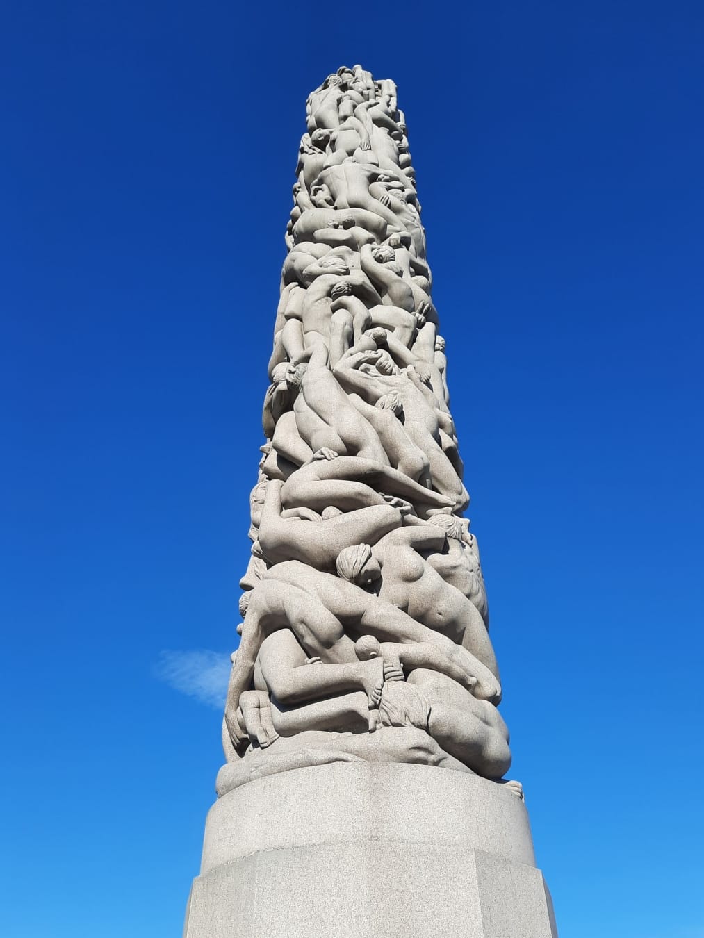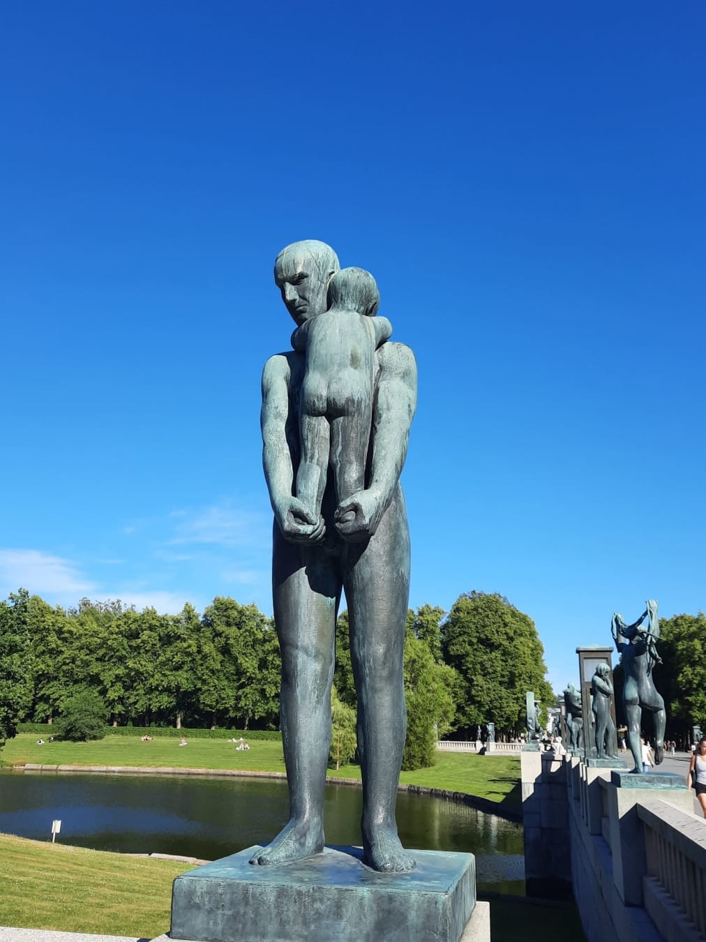 Majoituspaikastamme oli vain lyhyt kävelymatka viereiseen Frogner-kaupunginosaan ja Vigelandin puistoon – viralliselta nimeltään Frognerin puistoon – joka on Oslon suosituimpia ja kuuluisimpia nähtävyyksiä. Puistossa on yli 200 Gustav Vigelandin veistämää ihmispatsasta. Olisin jaksanut katsella ja ihmetellä ihastuttavan inhimillisiä ja puhuttelevia patsaita tuntikausia. Vigelandin patsaat täyttävät puistosta vain osan. Lisäksi siellä on esimerkiksi Norjan suurin ruusukokoelma, joka ainakin heinäkuun alussa oli häikäisevän kaunis.
