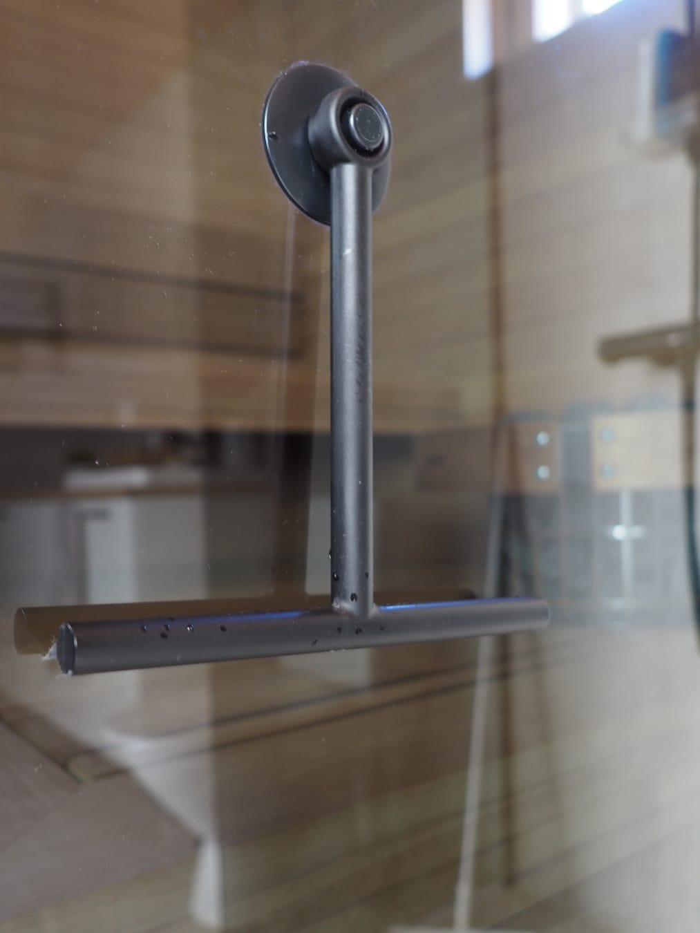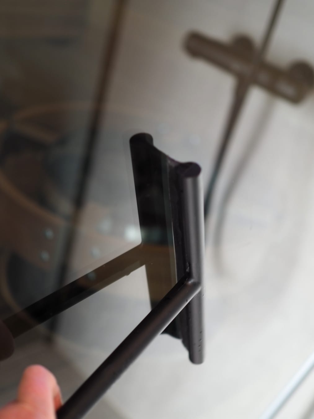 Olin joskus hankkinut kätevän, imukupilla seinään kiinnitettävän ikkunakuivaimen vanhaan kotiimme, mutta siellä sille ei löytynyt luontevaa paikkaa. Emmekä sitä juuri käyttäneet. Vanhassa kylppärissä ei ollut niin nokon tarkkaa, ovatko kaakelit ja suihkuseinä putipuhtaat. Onneksi pakkasin kuivaimen mukaan muuttokuormaan, koska nyt se pääsi hyvään käyttöön.