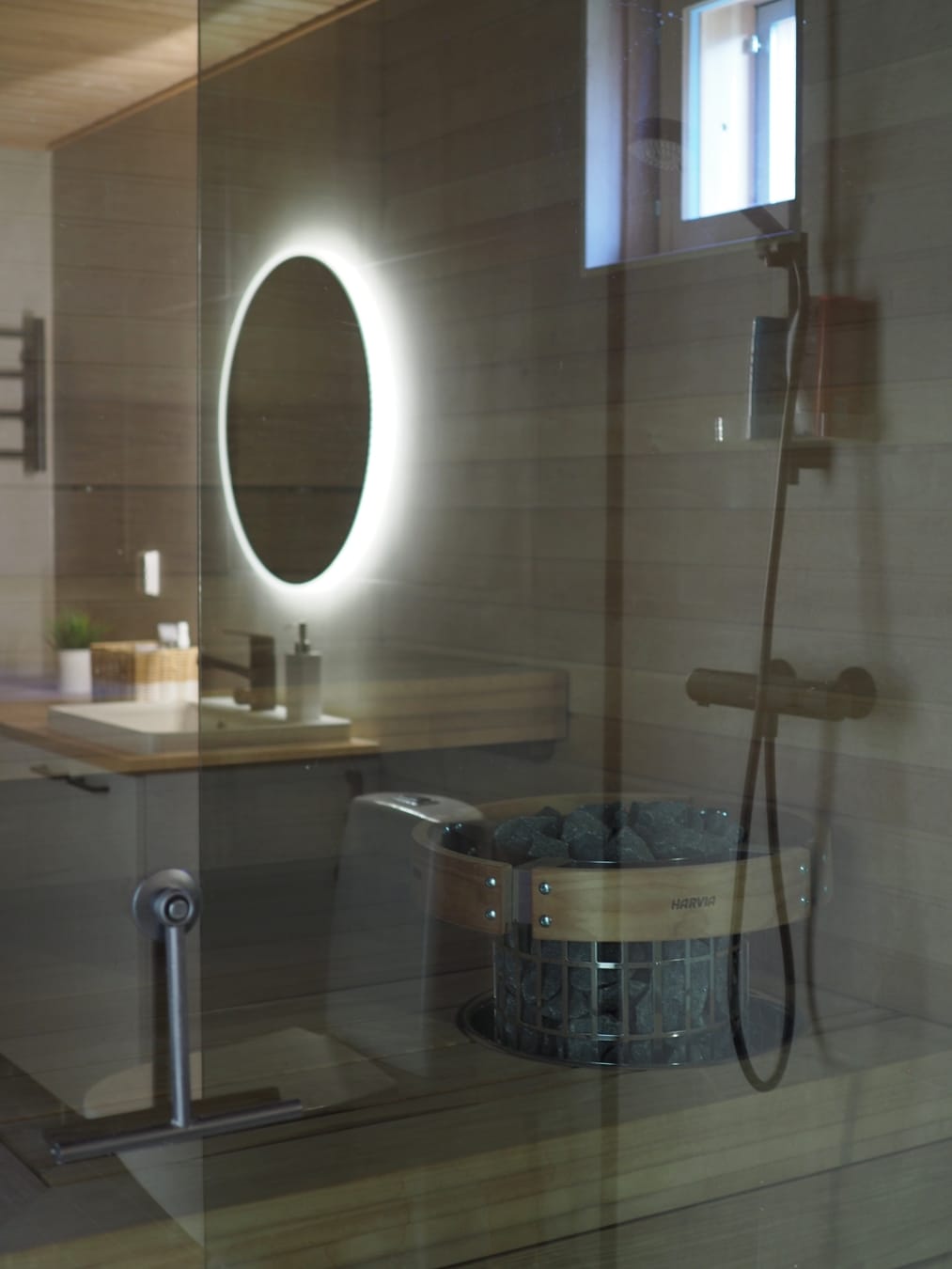 Lasiset seinät ovat kauniita ja tuovat kylpyhuoneeseen ja saunaan modernia ilmettä ja ripauksen ylellisyyttä. Ne päästävät valon kulkemaan ja avartavat ja luovat tilan tuntua pieniinkin tiloihin.
