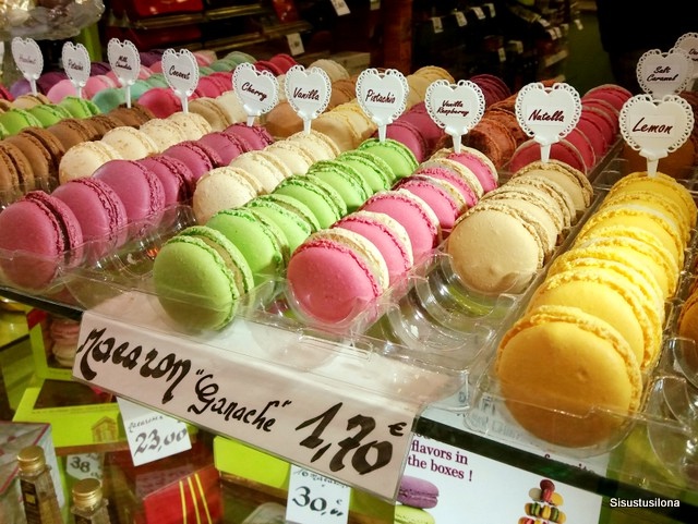 Rapsakka, mehevätäytteinen marenkileivos on nykyään ranskalaisen jälkiruokakulttuurin tähtituote, jolla on jopa oma, valtakunnallinen nimikkopäivänsä maaliskuussa. Montaa macaronea en pysty yhdellä kerralla syömään, sen verran makeita ne ovat. Mutta kauniitahan ne ovat ja juuri sopivan pieniä pieneen makeannälkään.