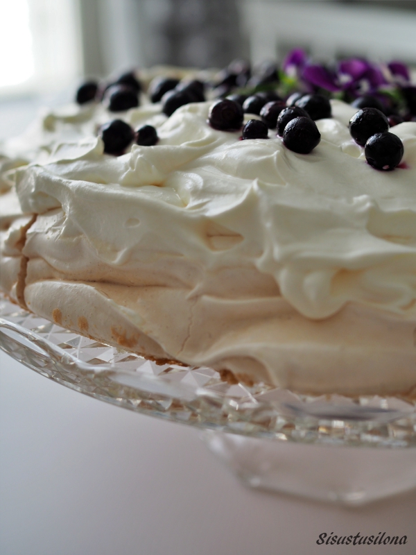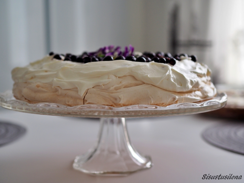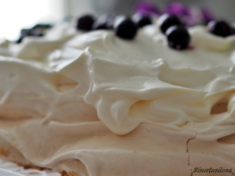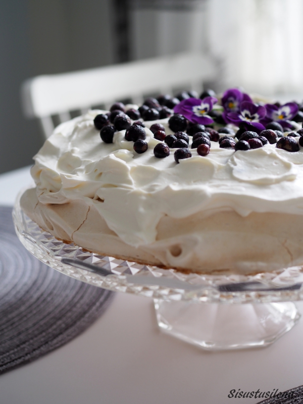 Miksi ihmeessä tein pavlovan vasta nyt? Ei aavistustakaan! Jostain syystä olen aina päätynyt tekemään muunlaisen kakun. Mutta nyt kun olen testannut pavlovan, aion ottaa sen vakituiseen leipomisohjelmaan. Pavlova on näyttävä tarjottava ja se on helppoa ja mutkatonta kasata, kun marenkipohja on valmiina. Kakku täytetään juuri ennen tarjoilua, jotta pohja säilyy mureana.