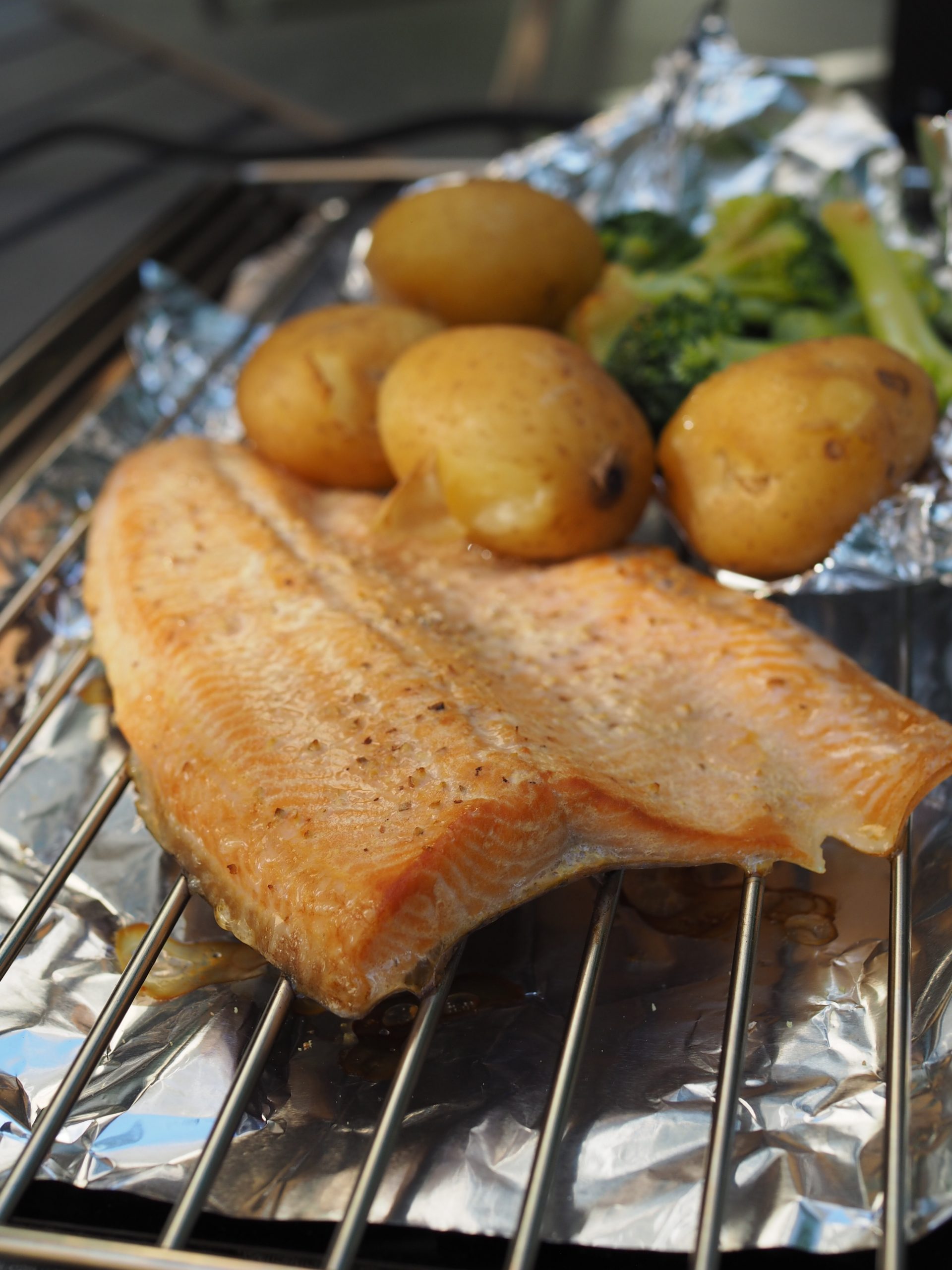 Jos haluaa oikein tarkaksi ruveta, voi tuikata kalaan tai lihaan lämpömittarin ja tarkistaa kypsyysasteen. Itse käytän sisälämpömittaria yleensä lihaa savustaessani, koska haluan varmistaa, että muille tarjoilemani liha on varmasti kypsää. Itse syön vain kalaa, lihaa en lainkaan.