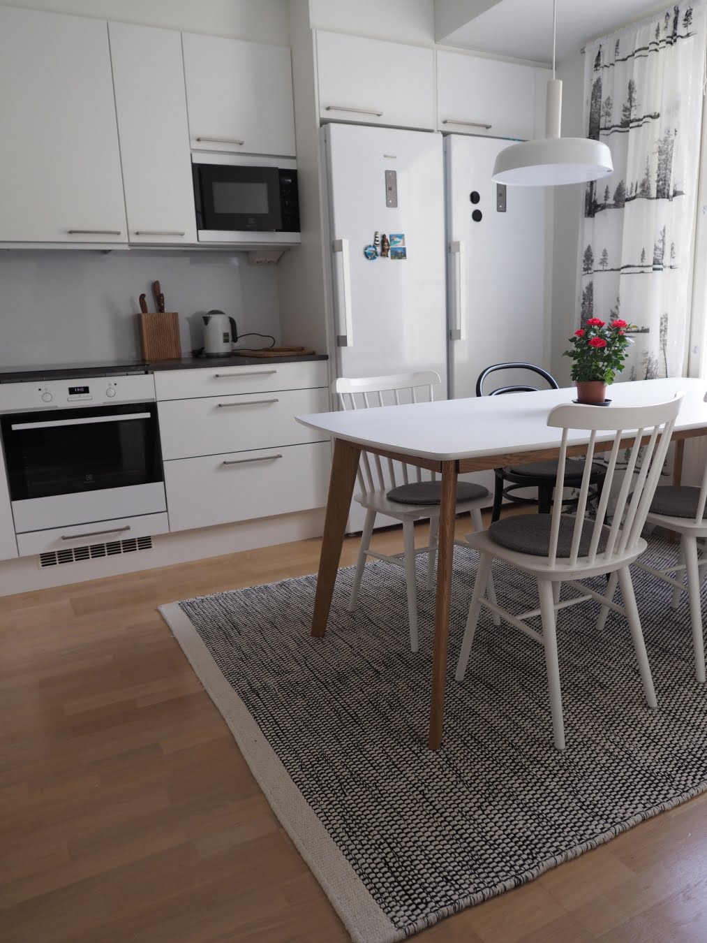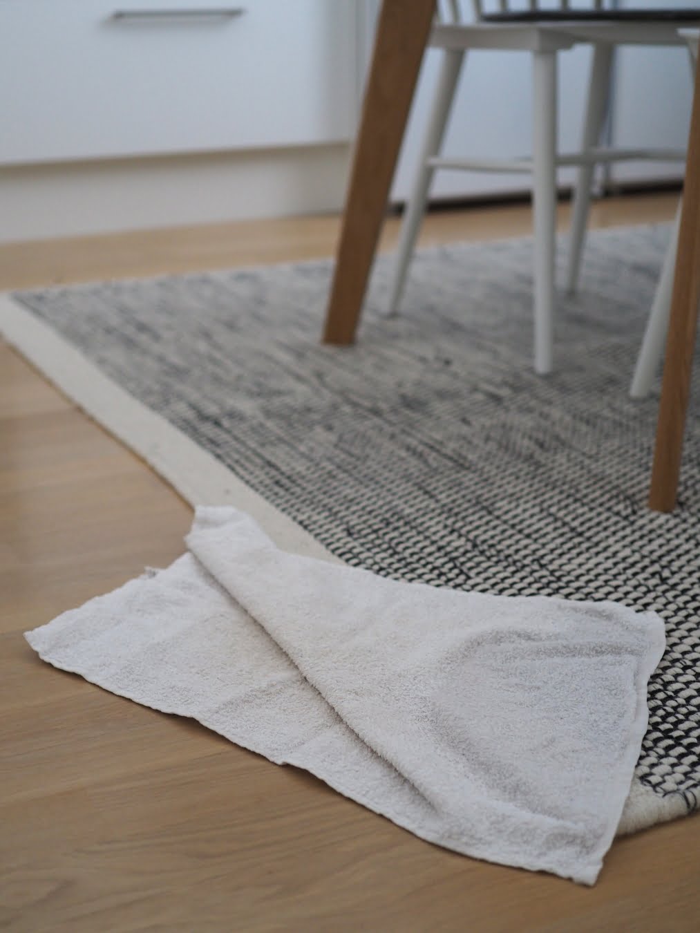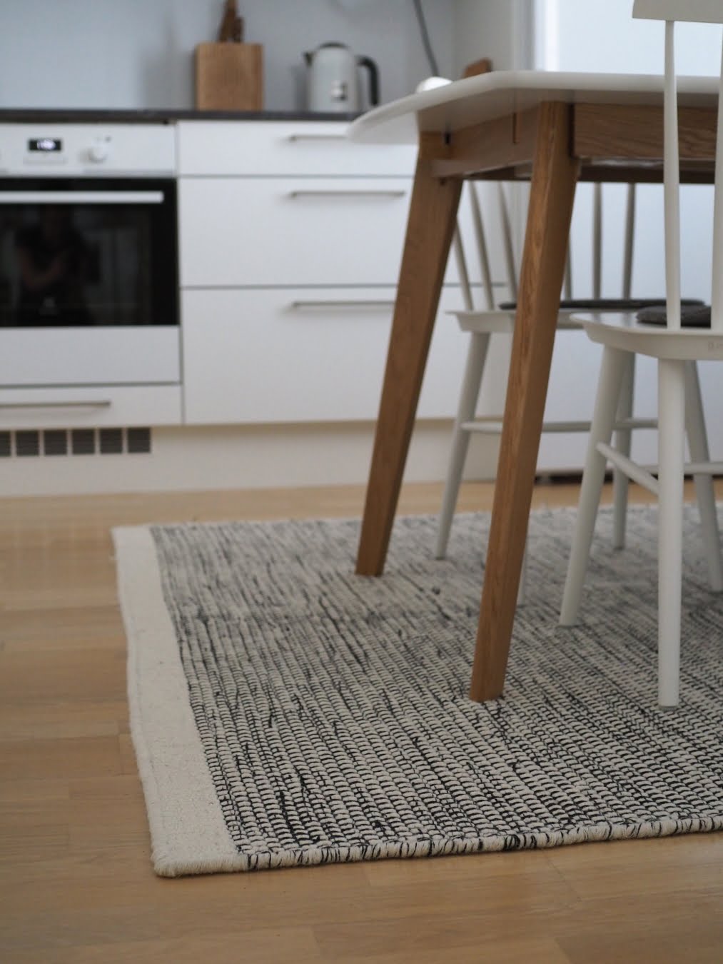 Meillä on ollut keittiössä pehmeä, lämmin ja kodikas villamatto monta vuotta. En ole kertaakaan katunut, että olen sen pöydän alle asettanut. Ehkä tilanne olisi toinen, jos lapsemme olisivat vielä taaperoikäisiä. Mutta nuoret sotkevat harvoin, jopa harvemmin kuin minä itse.