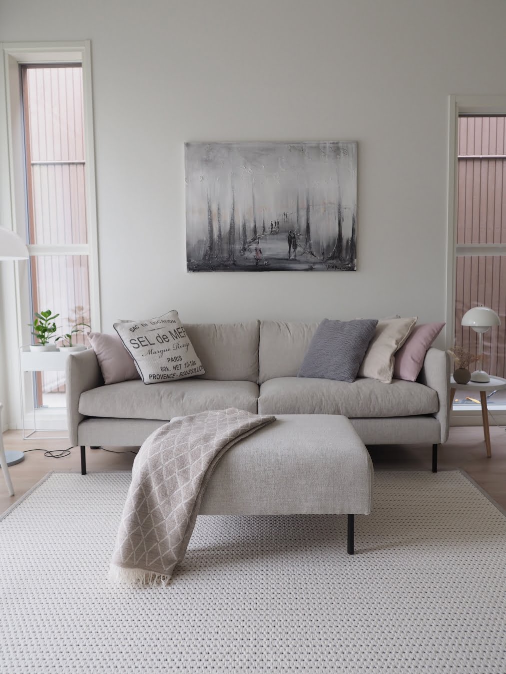 Värihän sopii! Klassinen, neutraali sävy solahtaa mukavasti muuhun sisustukseen. Olohuone näyttää tasapainoiselta ja harmoniselta, juuri sellaiselta mistä tykkään.