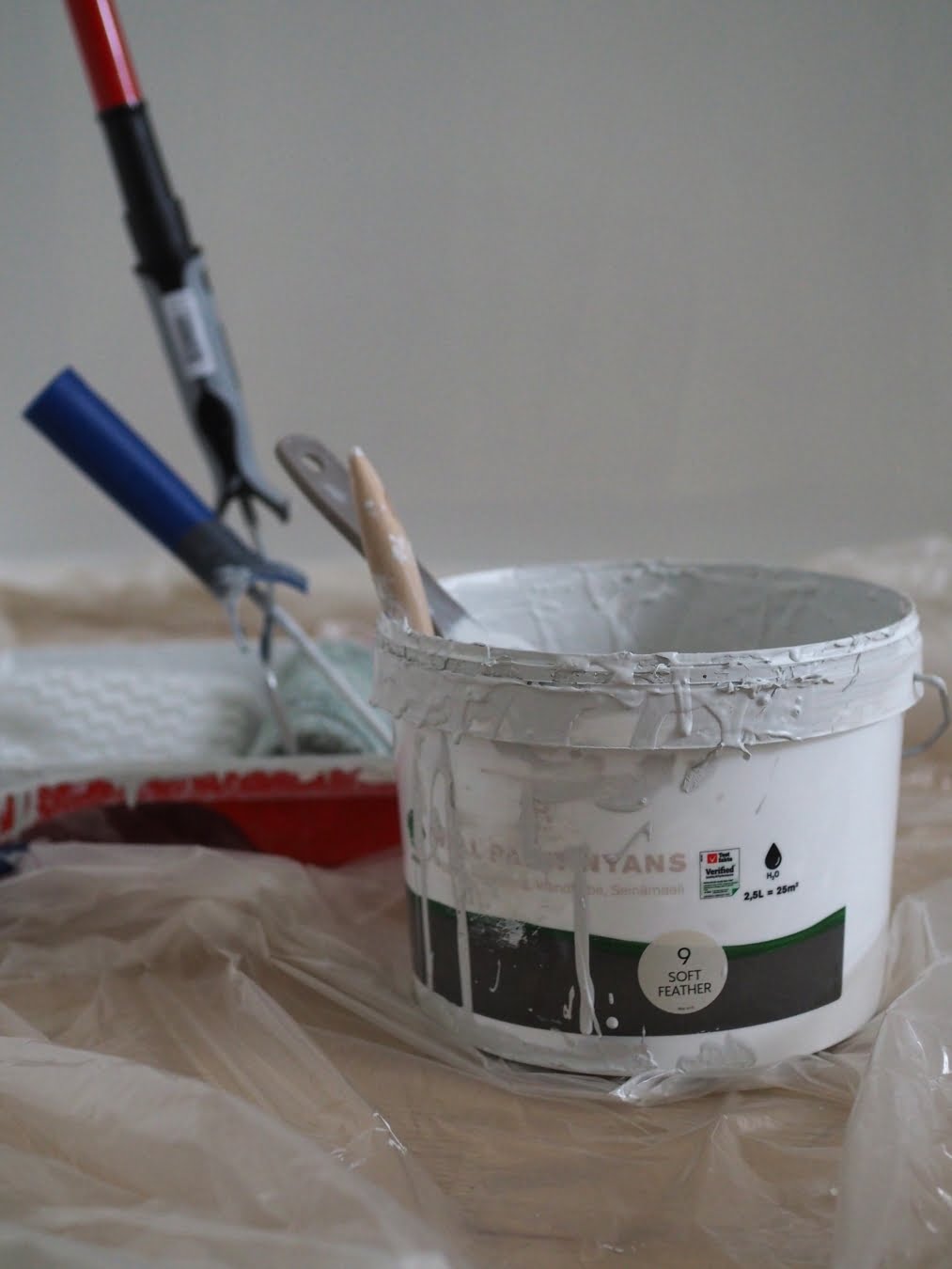 Muistat ehkä, että remppasimme jonkin aikaa sitten meidän nuorten huoneiden lattiat ja seinät. Minulle jäi maalausinto päälle ja lisäksi olin kovasti tykästynyt valitsemaani Soft feather -nimiseen mattasävyyn. Olisi ollut harmi jättää ylijäämämaali käyttämättä.