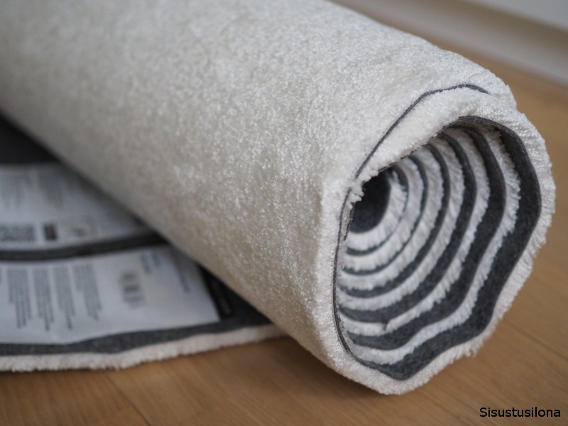 Pyöräytin vielä muutaman maton sovituksessa kotona, myös valkoisen Hattaran, ennen kuin laitoin tilauksen vetämään. Halusin olla varma valinnastani ja siitä, että matto todella sopii huoneeseen.
