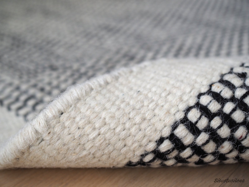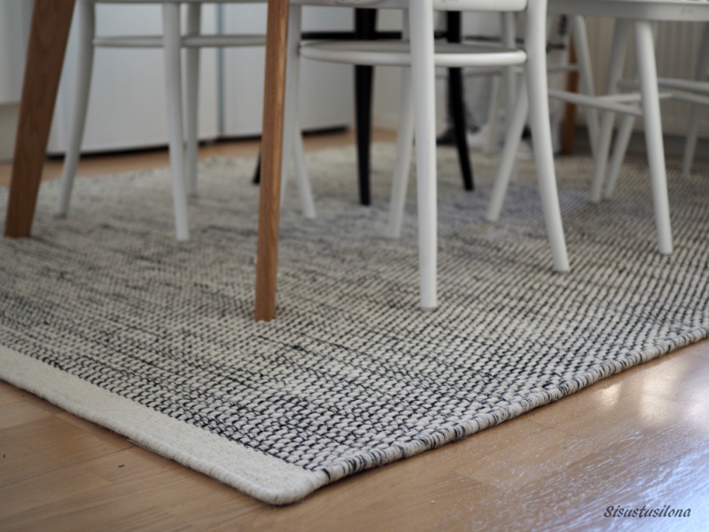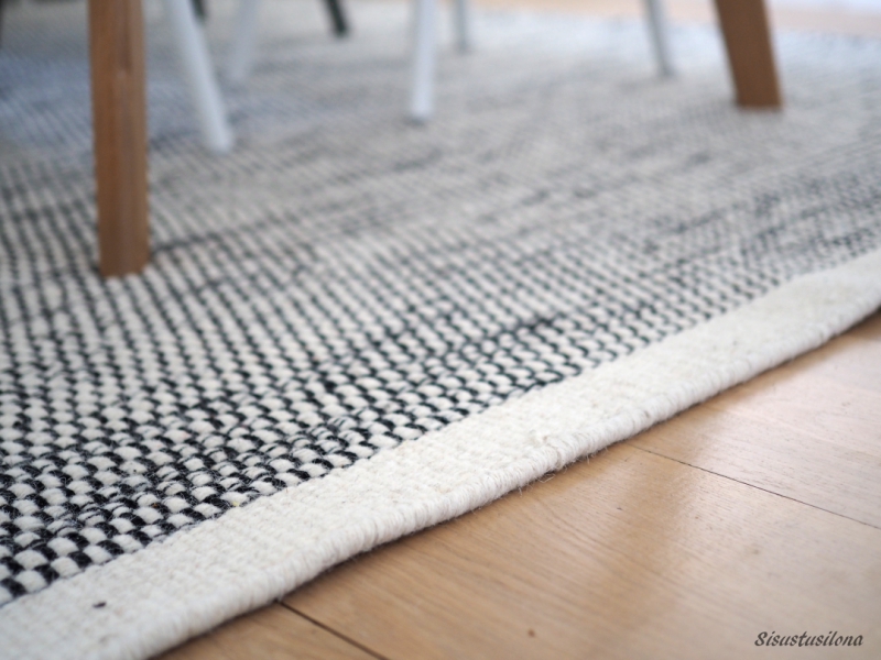 Löysin maton ihan ”lähikaupasta”, muutaman kilometrin päästä kotoamme, sisustustalo Cobellosta, josta sain sen blogin kautta. Vaikka teen nykyään suuren osan kaikenlaisista hankinnoistani verkkokaupoista, sisustelutavarat ovat yleensä sellaisia, että ne on nähtävä ja niitä on päästävä hypistelemään ennen hankintaa.