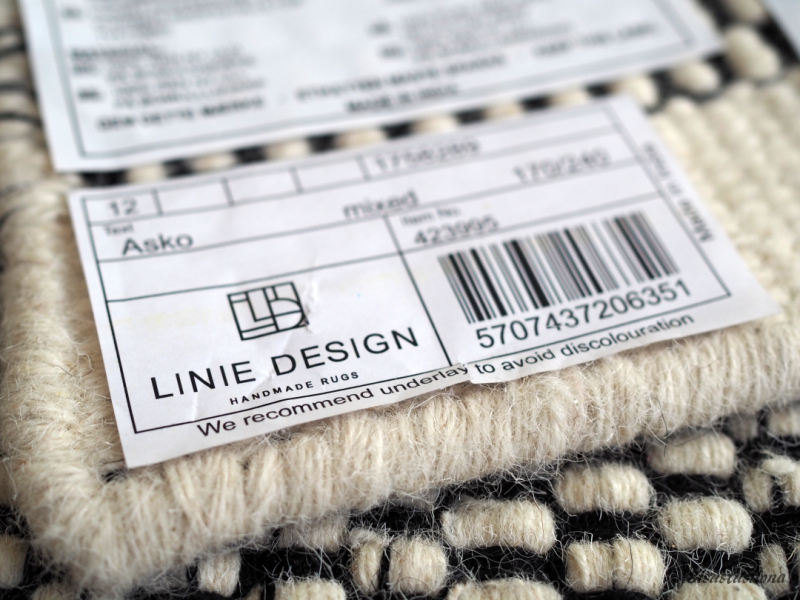 En osaa valita mattoa ennen kuin olen kiepauttanut eri vaihtoehtoja kotona mallailtavana. Useinhan matto näyttää kotona AIVAN erilaiselta kuin myymälässä. Yleensä pyydän kotiin pyöräytettäväksi pari mattoa siinä vaiheessa, kun on aika valita kahdesta tai kolmesta mieleisimmästä. Kaiken pähkäilyn jälkeen valitsin keittiöömme Linie Designen suositun Asko Mixed -maton.