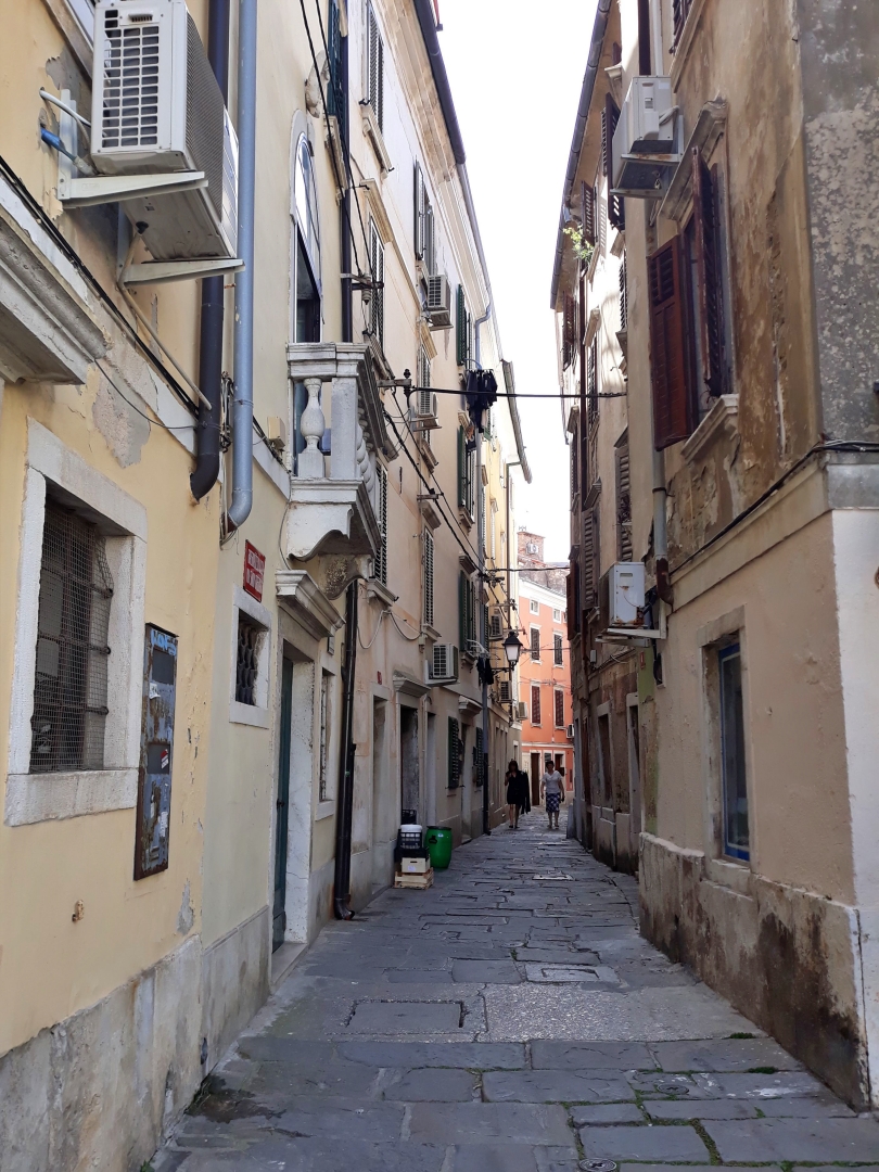 Reilun viiden tunnin autossa köröttelyn jälkeen kärsivällisyytemme palkittiin ja saavuimme rannikkokaupunki Piraniin. Vielä piti saada vietyä auto pysäköintihalliin kaupungin laitamille, sillä kaupungin sisällä ei parkkipaikkoja ole – vain muutamia paikkoja lyhytaikaiseen pysäköimiseen, ja silloinkin kaupungin sisälle ajaminen on maksullista. Mies kippasi minut ja matkalaukut kaupunkiin, vei auton ja tuli kävellen majapaikkaamme.