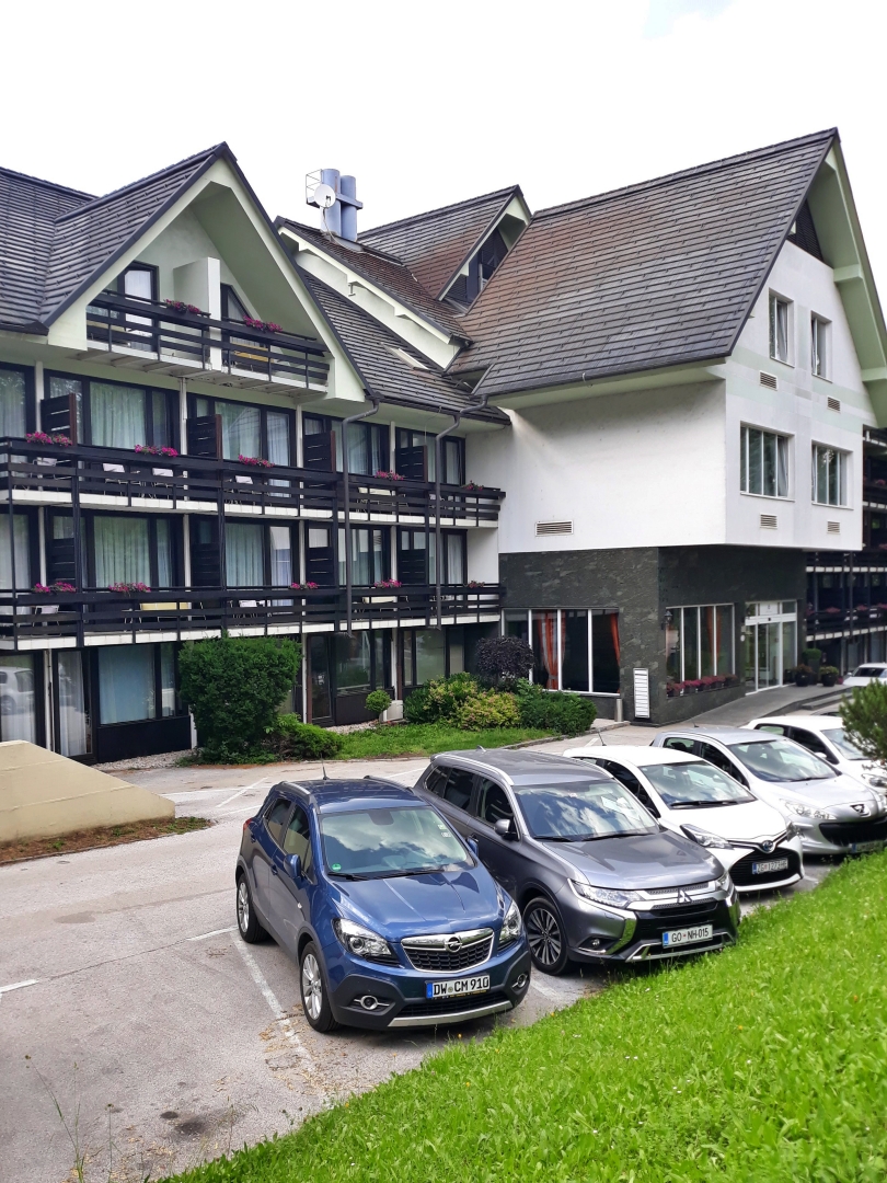 Majoituimme Bledissä keskeisellä paikalla, lähellä järveä sijaitsevaan Hotel Kompas Blediin. Saavuimme hotellille sen verran ajoissa, ettei huoneemme ollut vielä valmis.