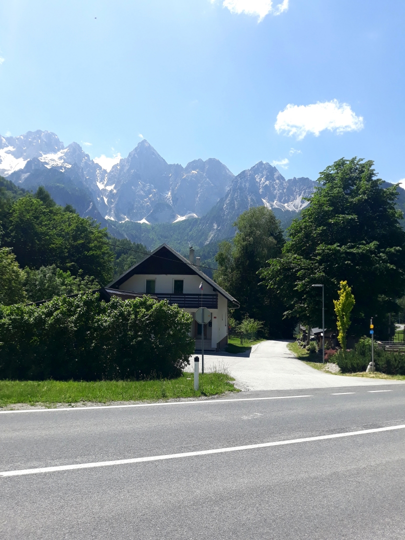 Seuraavaksi suuntasimme auton nokan kohti Kranjska Goran kylää Itävallan ja Italian rajojen tuntumaan. Laskettelukeskuksena tunnettu kylä sijaitsee luoteis-Sloveniassa, jossa Italian Dolomiitit jatkuvat Julisina Alppeina. Ajoimme pitkin Sava-joen vartta ja mies alkoi haaveilla uinnista virtaavassa vedessä. Hän tuli kuitenkin toisiin aatoksiin, kun kokeilimme jokivettä: se oli hyytävän kylmää.